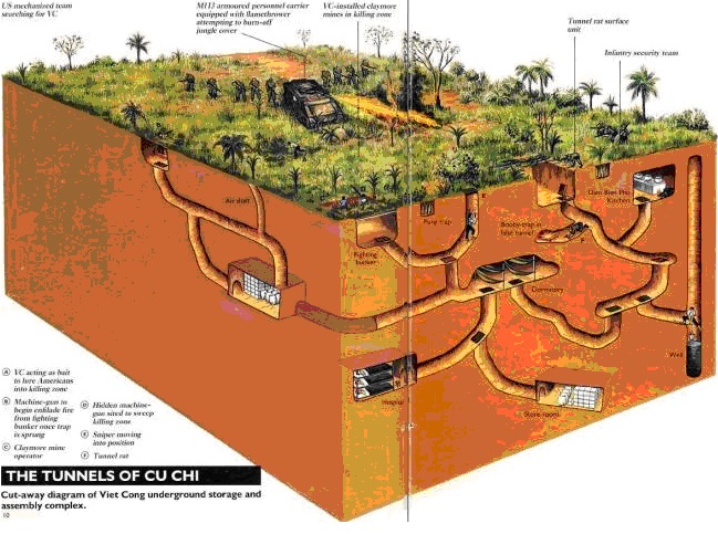 Không giống như những bộ phim của Holywood, (những con chuột đường hầm - Tunnel rats) được lựa chọn từ những binh sĩ không cao to, người gầy và liều lĩnh, sẵn sàng với một khẩu súng ngắn chui vào bóng đêm của cái chết, trong đường hầm đó, chờ đợi lính Mỹ là sự chật chội đến nghẹt thở, bóng tối mù mịt, mìn, cạm bẫy, rắn độc, bò cạp, và sau đó nữa là những người du kích thiện chiến.