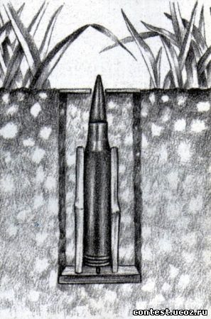 Bẫy bằng đạn bắn thẳng; một cái ống tre, cắm vào một miếng sắt có một cái vấu như kim hỏa, một cái lò xo bút bi và viên đạn. Chôn bẫy đó trên đường mòn, khi GIS dẫm chân lên, viên đạn đi xuống phía dưới và chạm vào kim hỏa vấu. Nhẹ thì đạn xuyên qua bàn chân, bị thương nặng hơn có thể là cả chân hoặc tử vong.
