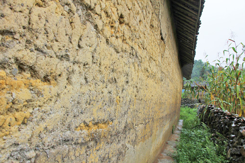 ![]() Tường nhà bằng đất lâu ngày đã rạn chân chim.