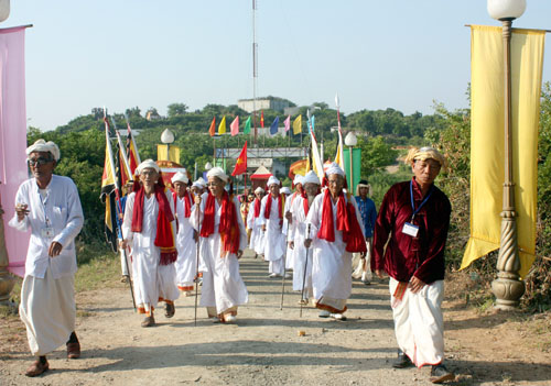 ![]() Các Cả sư Chăm rước y trang lên Tháp Pô Klong Girai. |