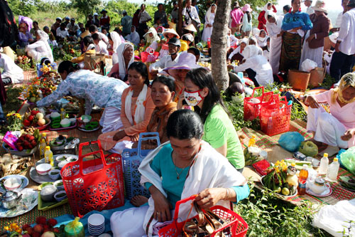 ![]() Đồng bào cùng bày lễ vật cúng thần Pô Klong Girai. |