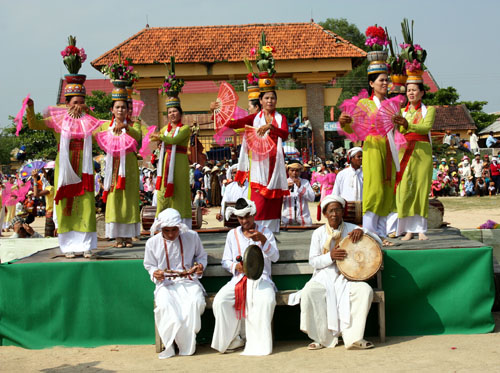 ![]() Đồng bào tổ chức biểu diễn văn nghệ mừng lễ hội. |