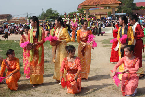 ![]() Các thiếu nữ uyển chuyển điệu múa Chăm mừng lễ hội. |