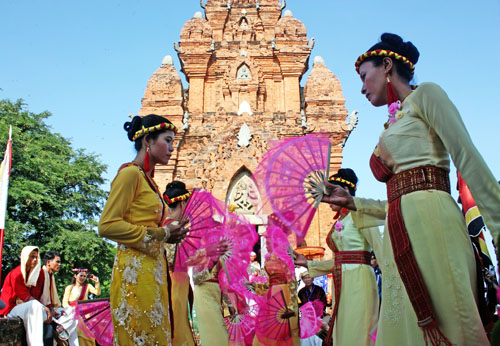 ![]() Các thiếu nữ múa mừng lễ hội tại tháp Po Klong Girai. |