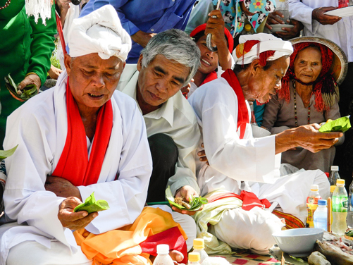 ![]() Chức sắc chủ trì buổi lễ thực hiện nghi thức mời gọi thần linh. |