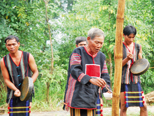 ![]() Già làng thực hiện nghi lễ cúng trong nhà. |