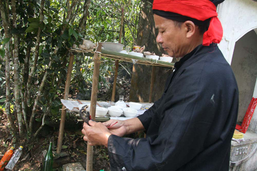 ![]() Thày cúng Nông Đức Xuân chuẩn bị lễ cúng. |