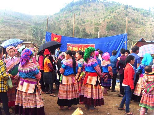 ![]() Lễ hội với nhiều tiết mục lý thú thu hút sự chăm chú của các thiếu nữ Mông. |